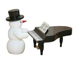 Deko Figur Schneemann am Flügel aus Holz echt handbemalt, passend zur Bestückung von Schwibbögen und Krippen und hergestellt im Erzgebirge. Höhe ca. 5,5 cm Made in Germany